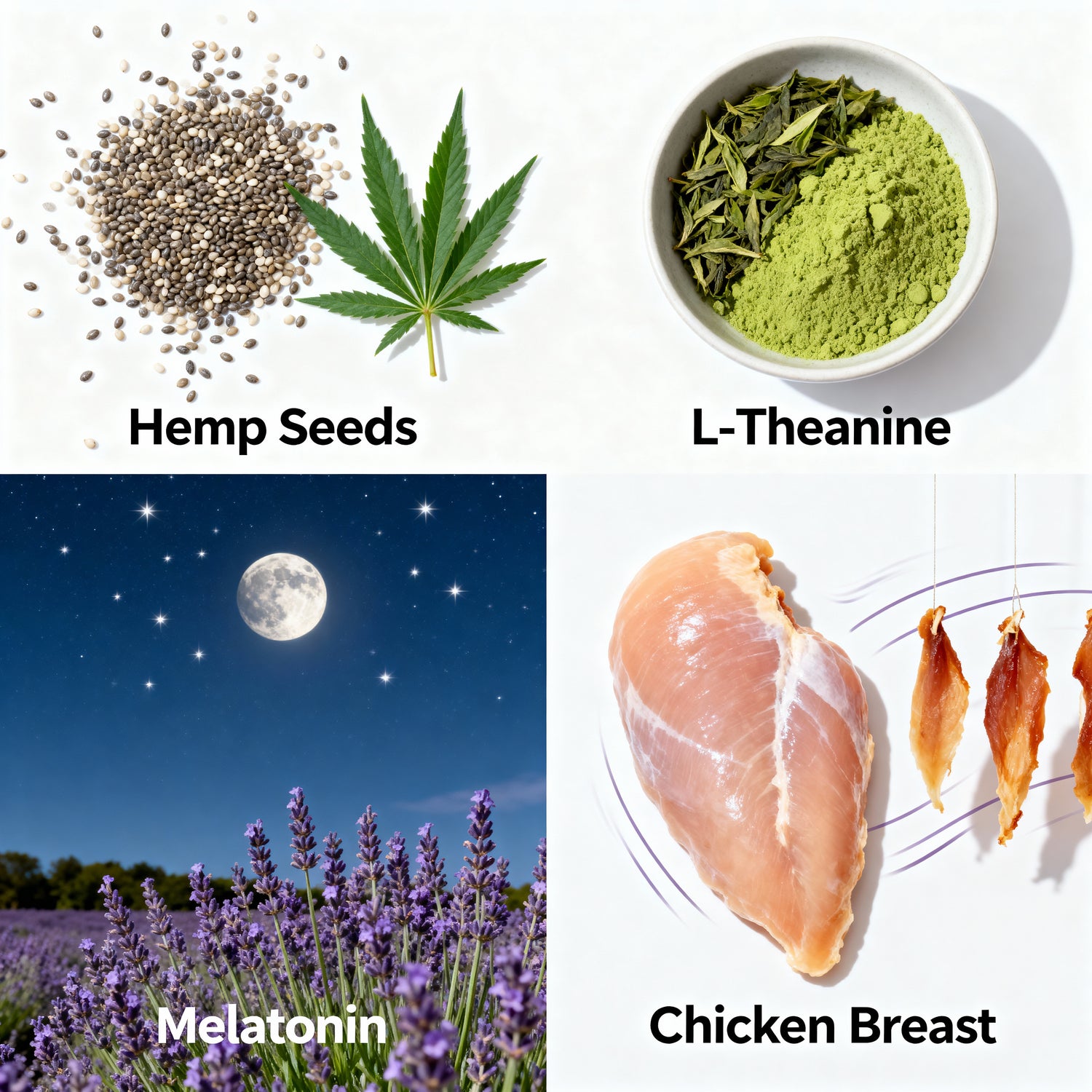 Melatonin & Casein Peptides - Handle acute stress (fireworks, storms) and chronic anxiety. Casein creates natural relaxation.