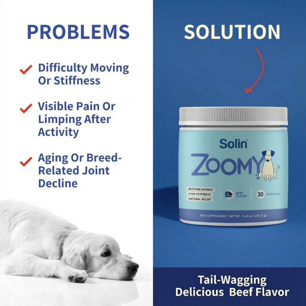 My 10-year-old German Shepherd Duke had been limping for months. Vet said it was arthritis and recommended expensive injections. I tried Solin Zoomy first and within two weeks, the limping stopped. Now he's chasing squirrels in the backyard again. I can't believe the difference. This supplement literally gave me my dog back.
