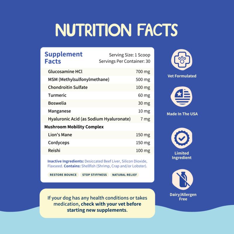 Absolutely. While Zoomy is formulated for senior dogs with existing joint issues, it's also excellent as a preventative for younger dogs - especially large breeds prone to hip dysplasia or dogs with active lifestyles. The mushroom blend supports overall health beyond just joints. Consult your vet if your dog is under 2 years old.